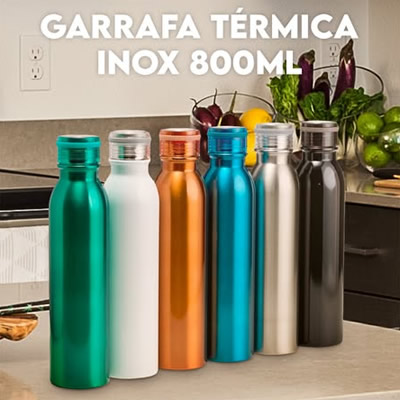 Garrafa térmica em aço inox com parede dupla com capacidade de 570 ml. Tampa rosqueável com anel de silicone, alça plástica em formato de mosquetão e bico rosqueável para fácil acesso. Design com frisos na tampa e pintura a pó.Conserva líquidos : ??8horas ??12 horas